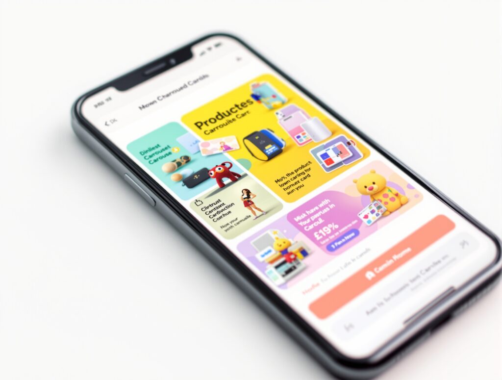 Product carousel, interactive button, branded message